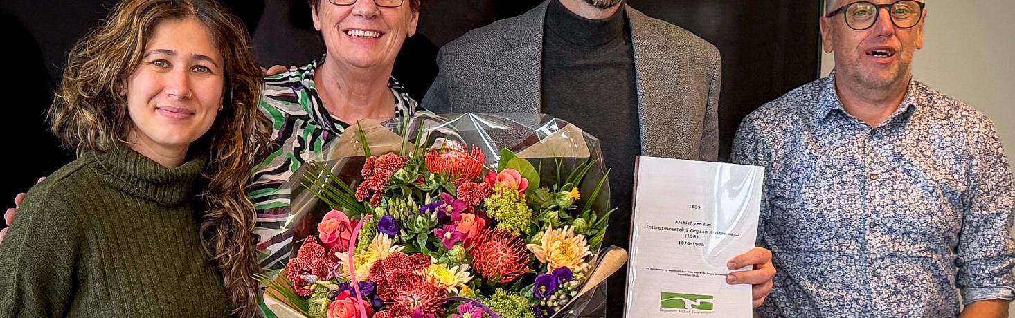 Tijdens het Jaargesprek Archieftoezicht werden de inventarissen symbolisch overhandigd aan Kevin van Tuil, archiefinspecteur van het RAR. Tegelijkertijd werd Ada bedankt voor haar jarenlange inzet voor de archieven. Eind dit jaar gaat zij genieten van haar welverdiende pensioen.
